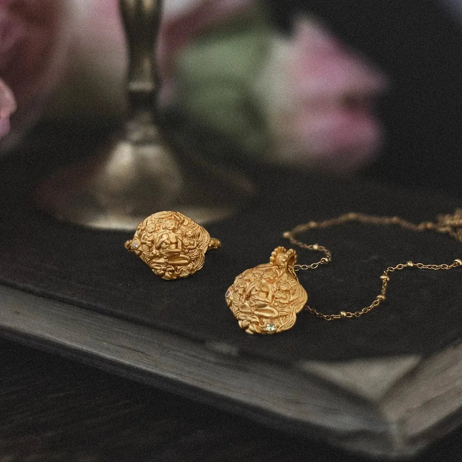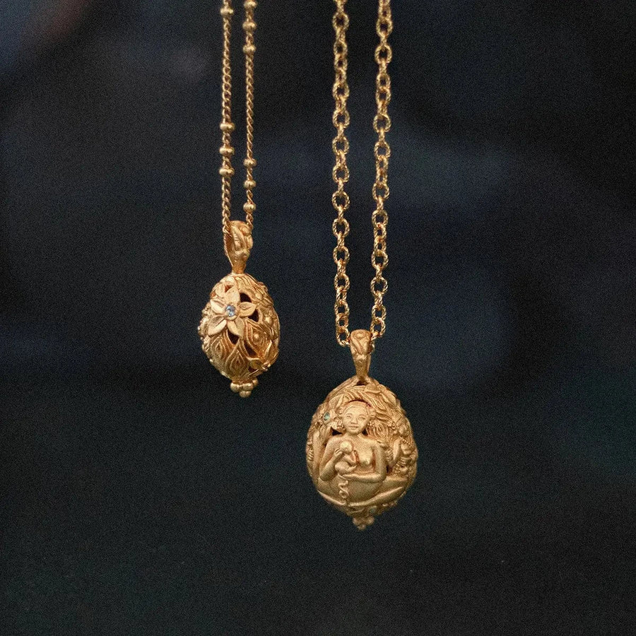 Guided by the archetype of Demeter, goddess of cycles and nourishment, and by gemstones of nurture, protection, and renewal, each piece is a talisman reminding us that we are always carried through life’s thresholds: we are held, to hold.