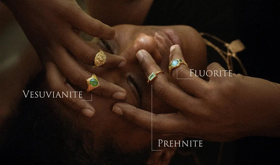 The Held to Hold collection was born of myth and crystal, of seed and season. Its pieces remind us that thresholds are not to be feared but honored, that to be born is divine initiation, again and again.