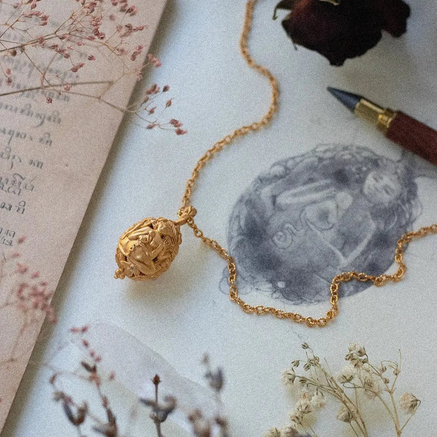Worn close, Held to Hold becomes a reminder that tenderness is strength, that being carried is part of becoming, and that love is both gift and responsibility. It is a circle, a continuum, a womb made visible in gold.